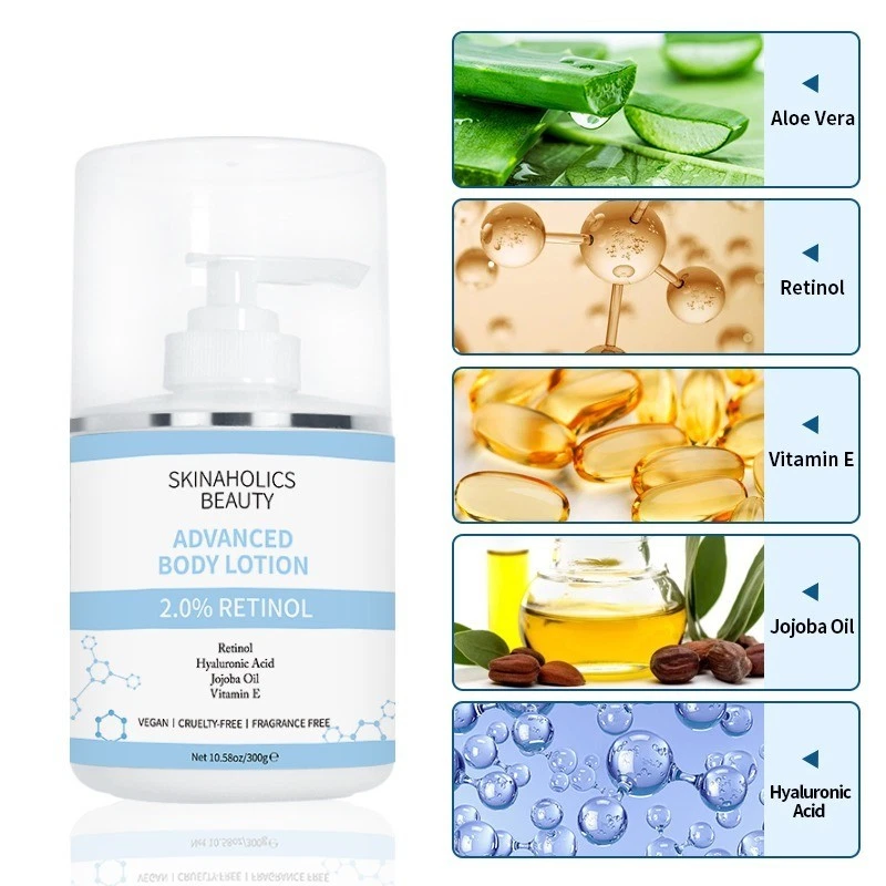 Anti-aging advanced retinol hyaluronic acid body lotion cream has vital ingredients which regenerate skin cells and help the skin to stay hydrated glowing.& youthful reduces signs of aging nourishes very dry skin.